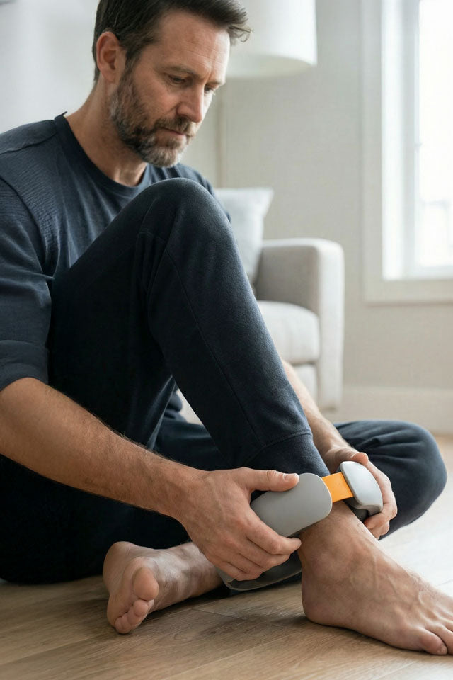 It is completely hands-free. You simply slide the device onto your lower leg, turn it on, and relax. Our AI-driven system handles the motion and pressure optimization, allowing you to read, work, or rest while recovering.