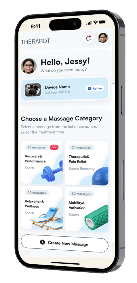 Put it on, choose your program, and let Therabot do the work—hands-free.