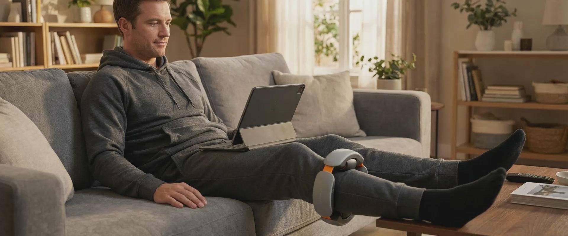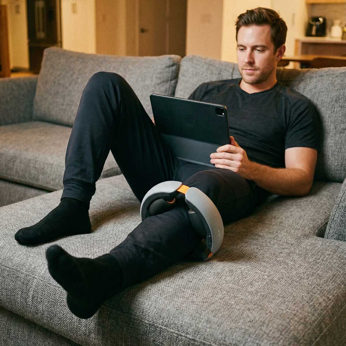 It is completely hands-free. You simply slide the device onto your lower leg, turn it on, and relax. Our AI-driven system handles the motion and pressure optimization, allowing you to read, work, or rest while recovering.