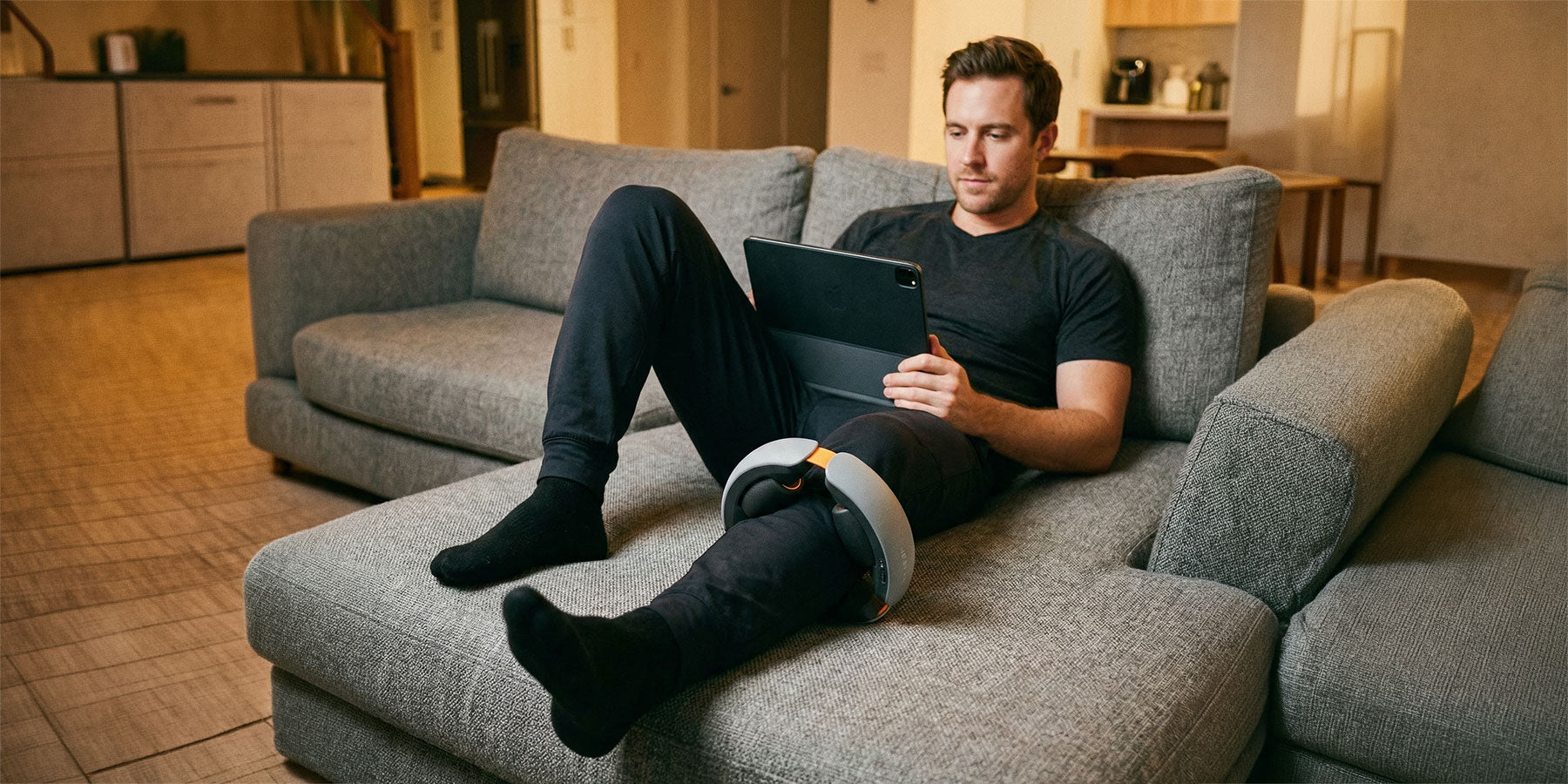 Therabot glides from ankle to thigh, including across the knee.