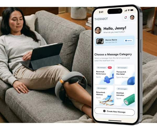 Therabot is designed to apply rolling pressure just like a real massage—steady pressure that helps your legs let go, without effort or technique.